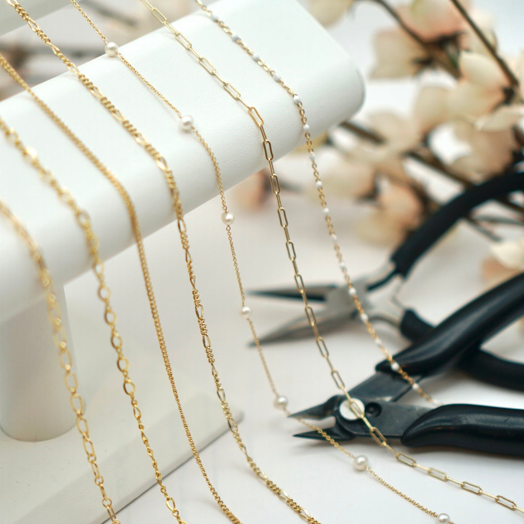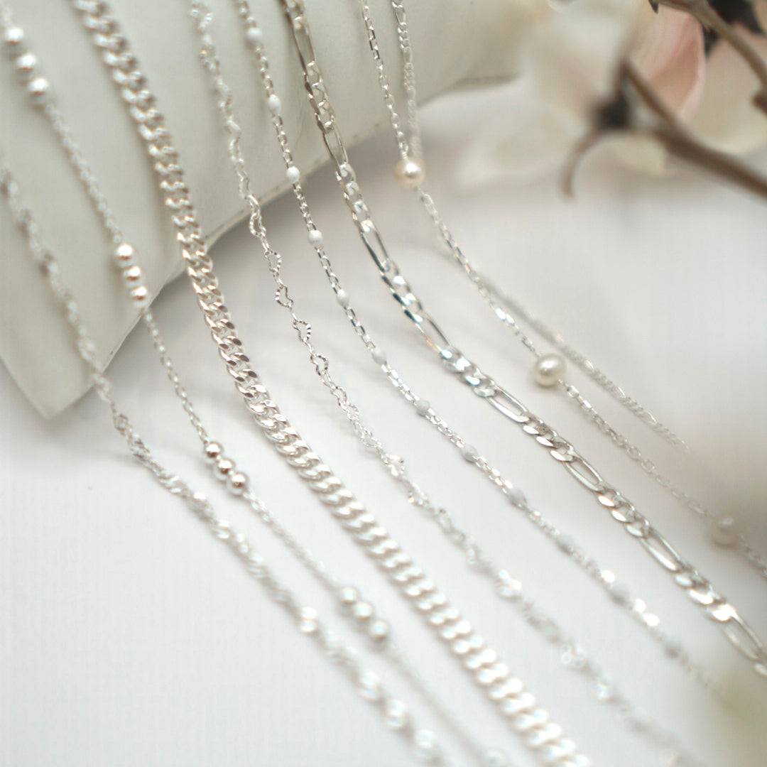 We carry a curated collection of chain styles in .925 sterling silver, 14k gold filled, 14k solid gold, and stainless steel. Each is carefully chosen for comfort, durability, and beauty.