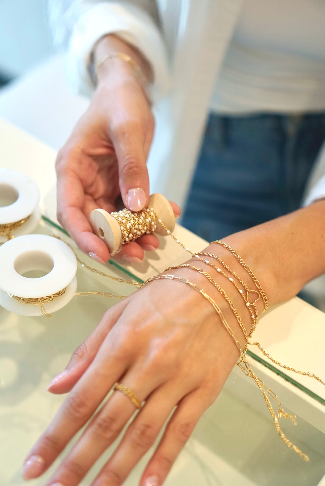 We use 14k gold filled, gold vermeil, and sterling silver — all chosen for their beauty, durability, and timeless quality.